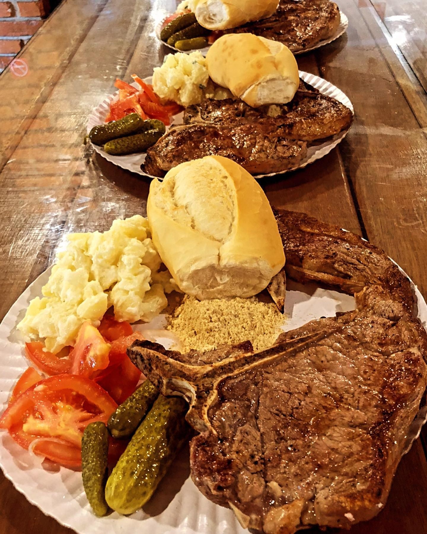 Churrasco, Pão, Maionese, Farofa, Saladas, Serve 1 Pessoa.