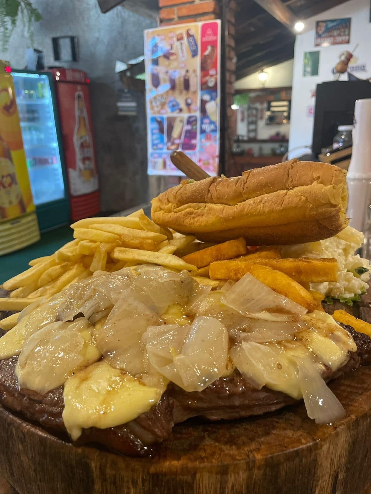 alcatra, queijo provolone, lascas de cebola